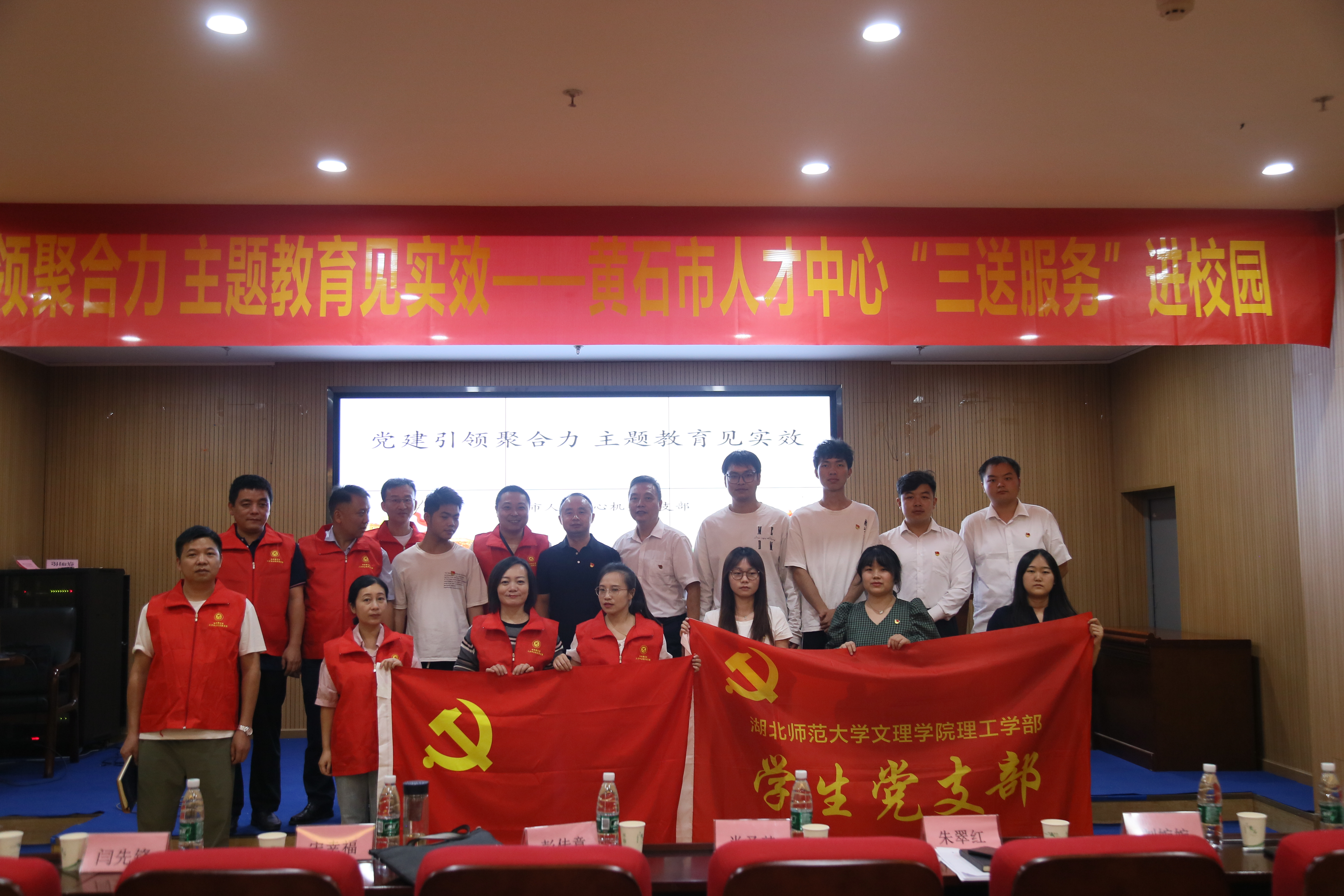 2023年9月27日,理工学部联合黄石市人才中心在图书馆报告厅举办了“党建引领聚合力 主题教育见实效”活动,活动邀请了黄石市人才中心党委书记彭传意,黄石市人才中心培训科科长杨卓,2位荆楚楷模(宋幸福,闫先锋),东贝集团招聘主管陈思皓,球探网页版理工学部党总支副书记肖圣芳等领导同志。