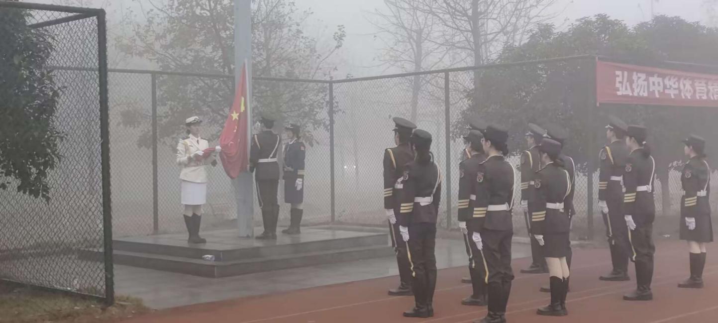 20231127日,理工学部举行升旗仪式暨“寸心寄华夏,岁月赠山河”主题爱国主义教育活动。伴随着高亢、激昂的《义勇军进行曲》,擎旗手奋力挥动右臂,五星红旗冉冉升起,全体师生队列整齐、肃穆地行注目礼。