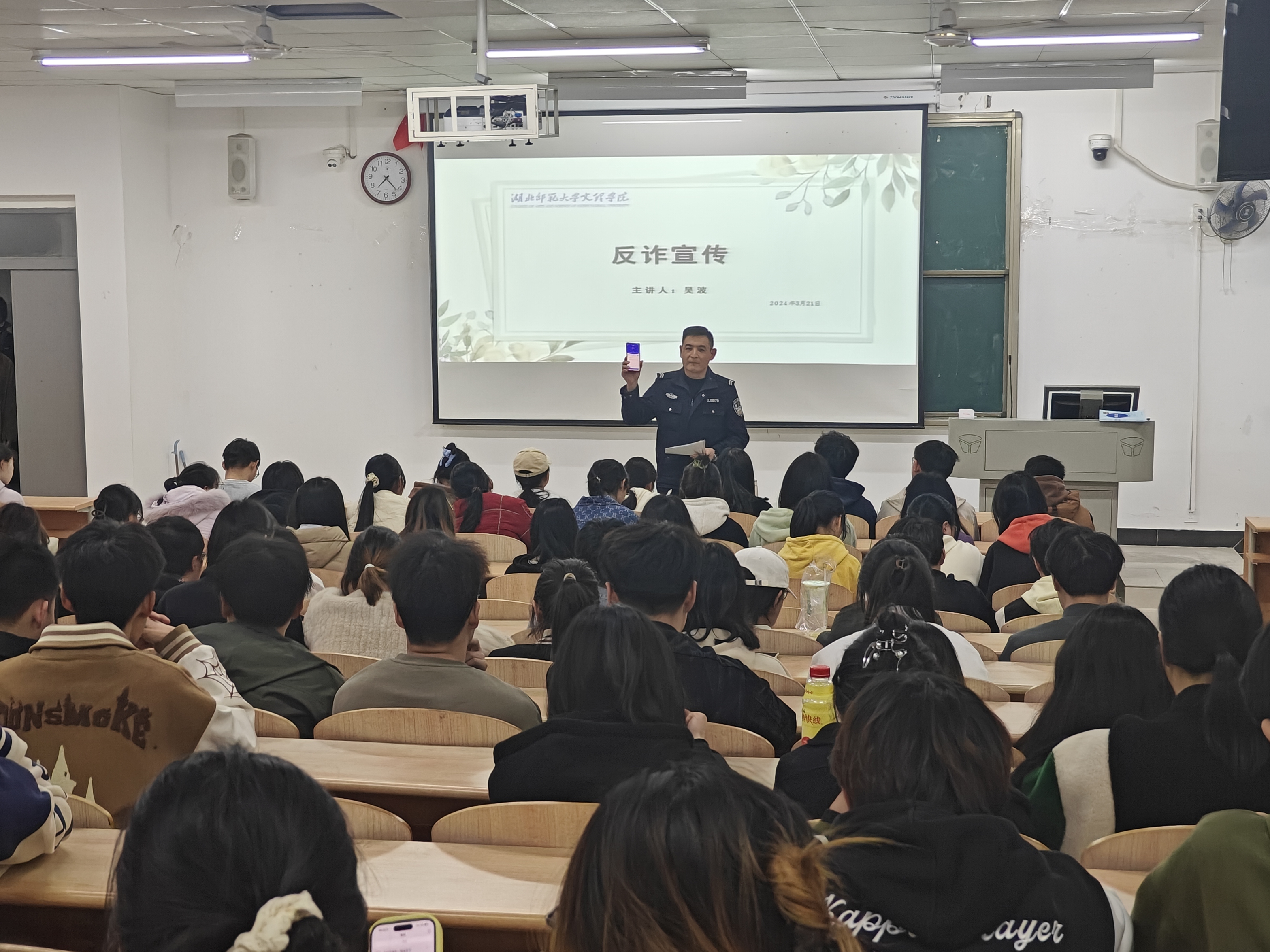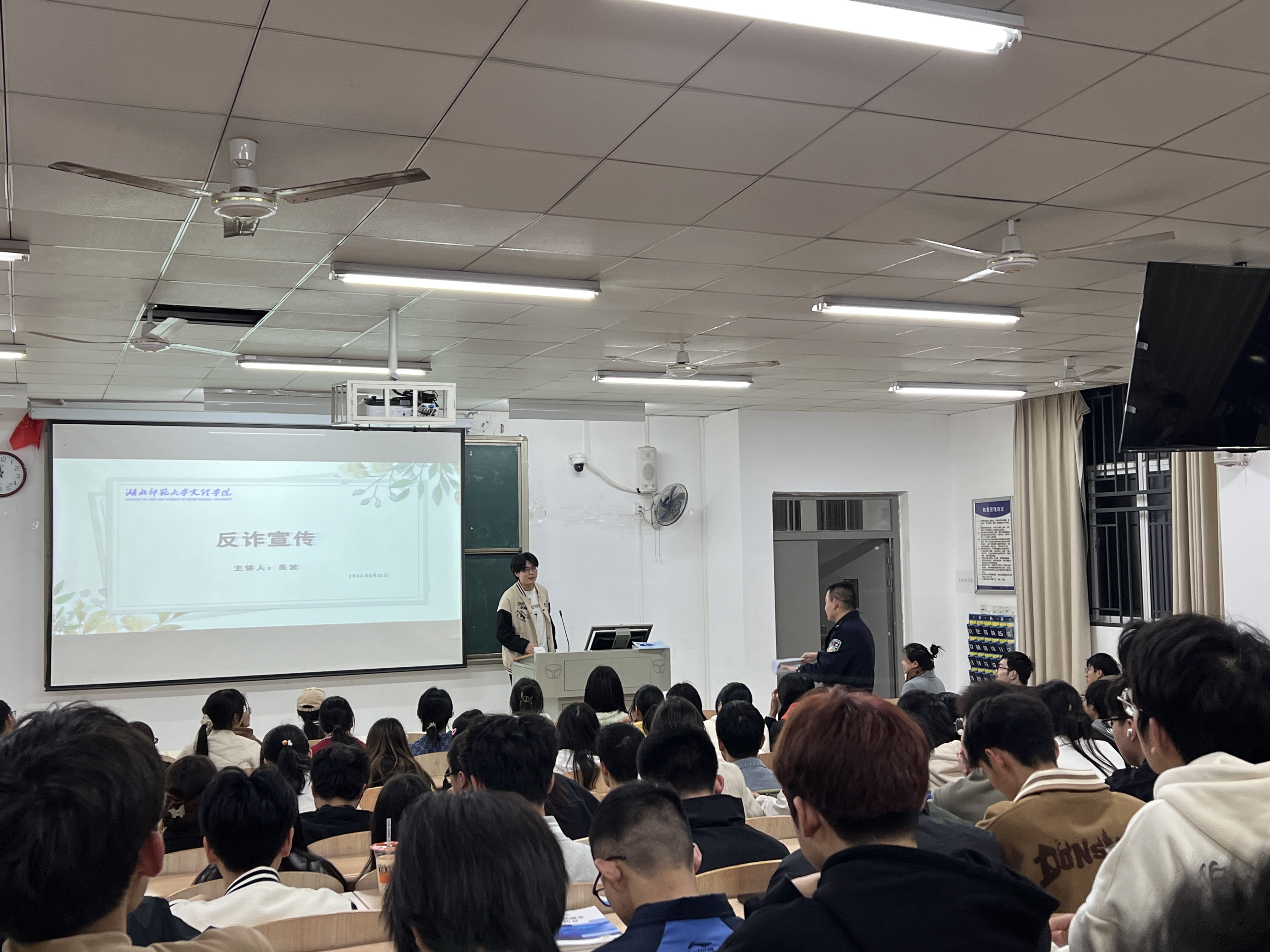 为深入推动球探qiutan(中国)官方创建平安校园工作,不断提升广大师生防诈意识和防骗能力,3月21日晚上7时,理工学部特邀汪仁派出所民警在教学楼1B-101,为约200名青年学子举行了“反电信诈骗”主题讲座,理工学部团总支副书记李哲昊老师,辅导员刘婉婉老师、胡兰捷老师、陆曦老师参加了活动。