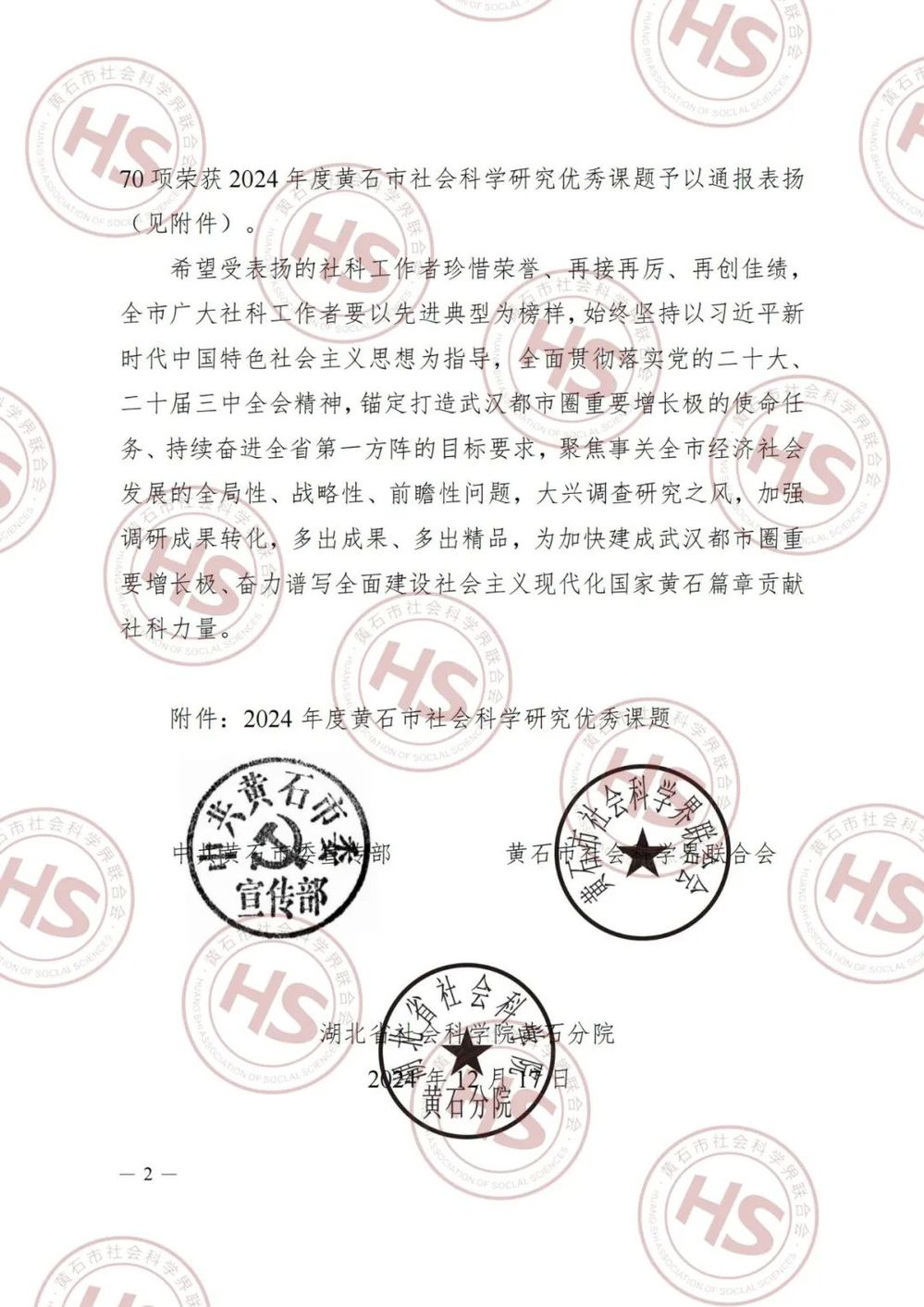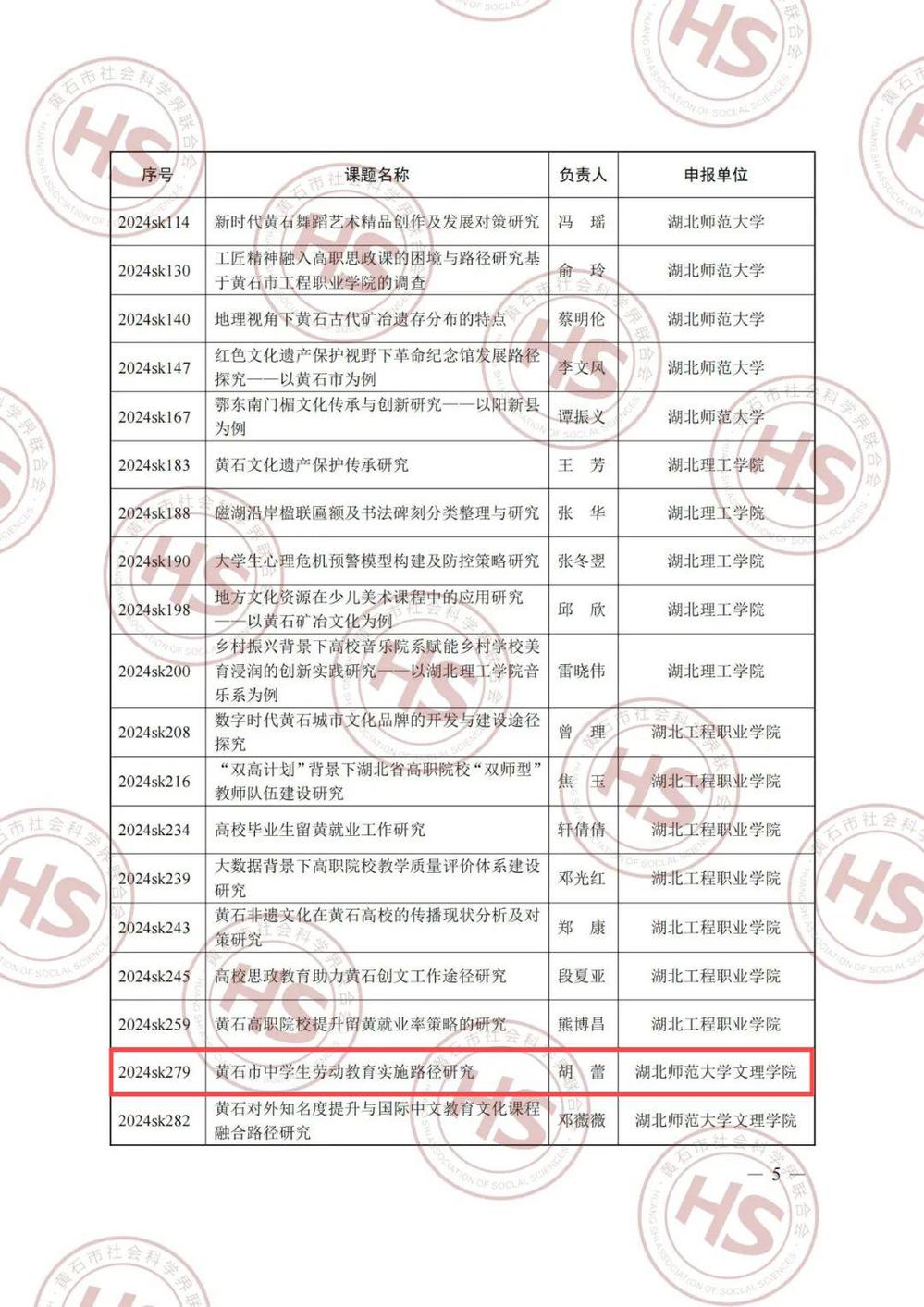 喜讯:胡蕾老师荣获“2024年度黄石市社会科学研究优秀课题”