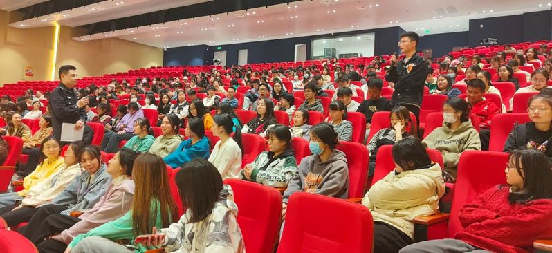 活动伊始,学术活动中心的屏幕上依次播放了不同诈骗种类及相应的反诈骗视频,帮助大家了解诈骗类型。随后,吴警官分别向大家介绍了刷单、网购、冒充公检法等诈骗行为类型和表现,并在互动环节询问同学们是否有遇到被诈骗经历,其中一个女生分享了她曾经遇到过一次购物诈骗,但通过反诈常识最终没有被骗子的花言巧语迷惑双眼。活动最后,吴警官反复强调了下载国家反诈中心的重要性并要求全员下载反诈骗App,提醒大家务必要时常登录反诈骗App并且打开预警功能,从而加强反诈骗App的预警作用。