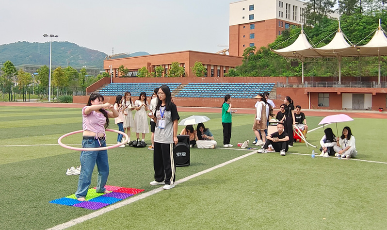 活动共分为三个小游戏,分别是“一穿到底”、“抢板凳”、“动感接力”。由各社团小组成员组成团体进行比赛。每个游戏都需要组员们相互配合、相互鼓励来完成,所以同学们都拼尽全力,认真对待。活动中期,魔术社为大家带来了一场奇幻的表演盛宴,丰富了活动内容,把活动氛围推向高潮。在炎炎烈日下进行拓展活动,同学们不仅感受到了太阳的温度,而且感受到了青春的热情。活动最后,全体人员合唱歌曲,时间在欢声笑语中飞逝,游戏也走近尾声。此次拓展活动不仅丰富了同学们的课余生活,带来了很多欢乐和趣味,也让同学们感受到了团队的重要性,学会在活动中放开自我、展现自我、奋力拼搏。