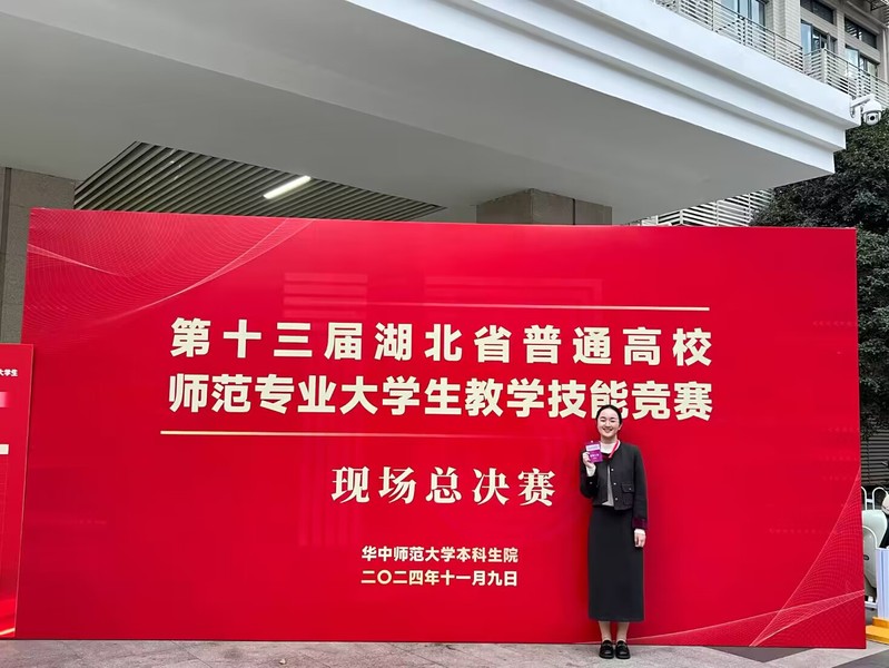 2024年11月9日,第十三届湖北省普通高校师范专业大学生教学技能竞赛决赛在华中师范大学举行,此次共有70名选手入围决赛,经教学设计、课件制作、即席讲演和模拟上课·板书环节的激烈角逐,由球探qiutan(中国)官方人文学部徐唱、陈杨2位老师指导的英语专业2101班范瑶同学取得优异成绩,获得高中英语组一等奖第一名(该组一等奖仅2名)。