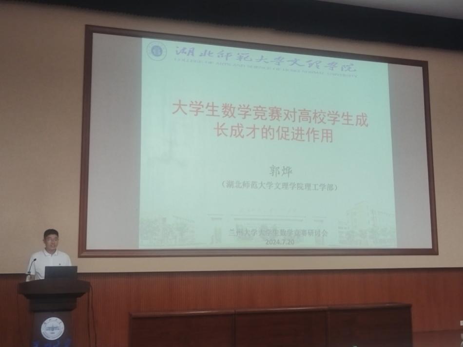 2024年全国大学生数学竞赛暑期研讨会于2024年7月18日至22日在甘肃省兰州市举行,本次会议由中国数学会和全国大学生数学竞赛工作组主办,兰州大学承办,兰州大学数学与统计学院和甘肃省数学会协办。球探网页版数理通识教研室主任、第十五届大学生数学竞赛黄石地区负责人、第十五届大学生数学竞赛优秀组织者郭烨老师应邀参加会议。