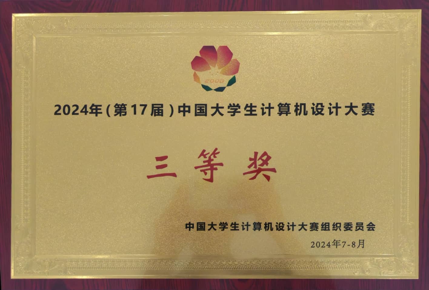 2024年第17届中国大学生计算机设计大赛于2024年7月22-26日在山东省威海市举行,本次会议由中国大学生计算机设计大赛组织委员会主办,山东大学、北京语言大学承办,并得到高寻真源(北京)科技有限公司、上海弘玑信息技术有限公司和南京秉蔚信息科技有限公司的大力支持。球探网页版学生佘佳佳在理工学部董学良老师的指导下,首次获得省级比赛一等奖并在国赛决赛中荣获三等奖。
