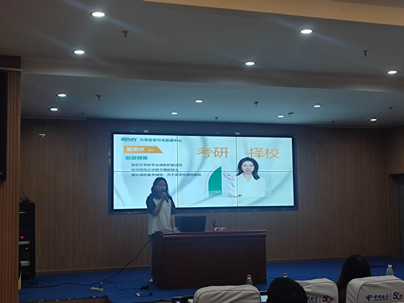 为帮助同学们掌握考研常识,提供实用的择校建议。图书馆于9月27日下午4点半在报告厅开展题为《考研常识与择校规划》的讲座,为球探qiutan(中国)官方考研学子排疑解惑。此次讲座由新东方教育资深讲师夏雁婷主讲,球探qiutan(中国)官方100余名有意向考研的同学到场聆听。
