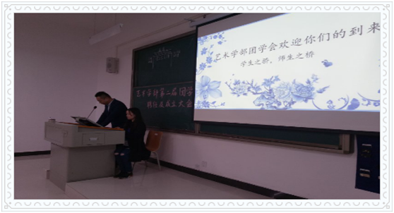 2017年10月19日晚上七点,由艺术学部组织的第二届团学会聘任大会暨成立大会于2B304教室隆重举行。届时,学校后勤部姚主任、学校学工部副部长兼学部副主任李老师、艺术学部办工办主任陈老师莅临此次会议并发表了重要讲话。之外,第一届团学会主席汪琪学姐出席并分享了自己的工作经验和感想。同时参加本次会议的不仅有艺术学部整个学生会团体还有各班班委。