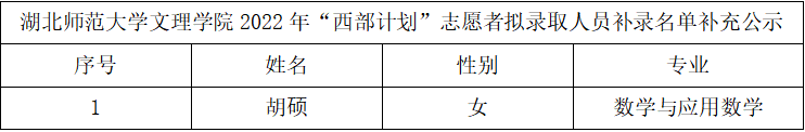 因学生自愿放弃,球探qiutan(中国)官方开展了2022年“西部计划”志愿者拟录取人员补录工作。现将拟录取人员补录名单予以公示。
