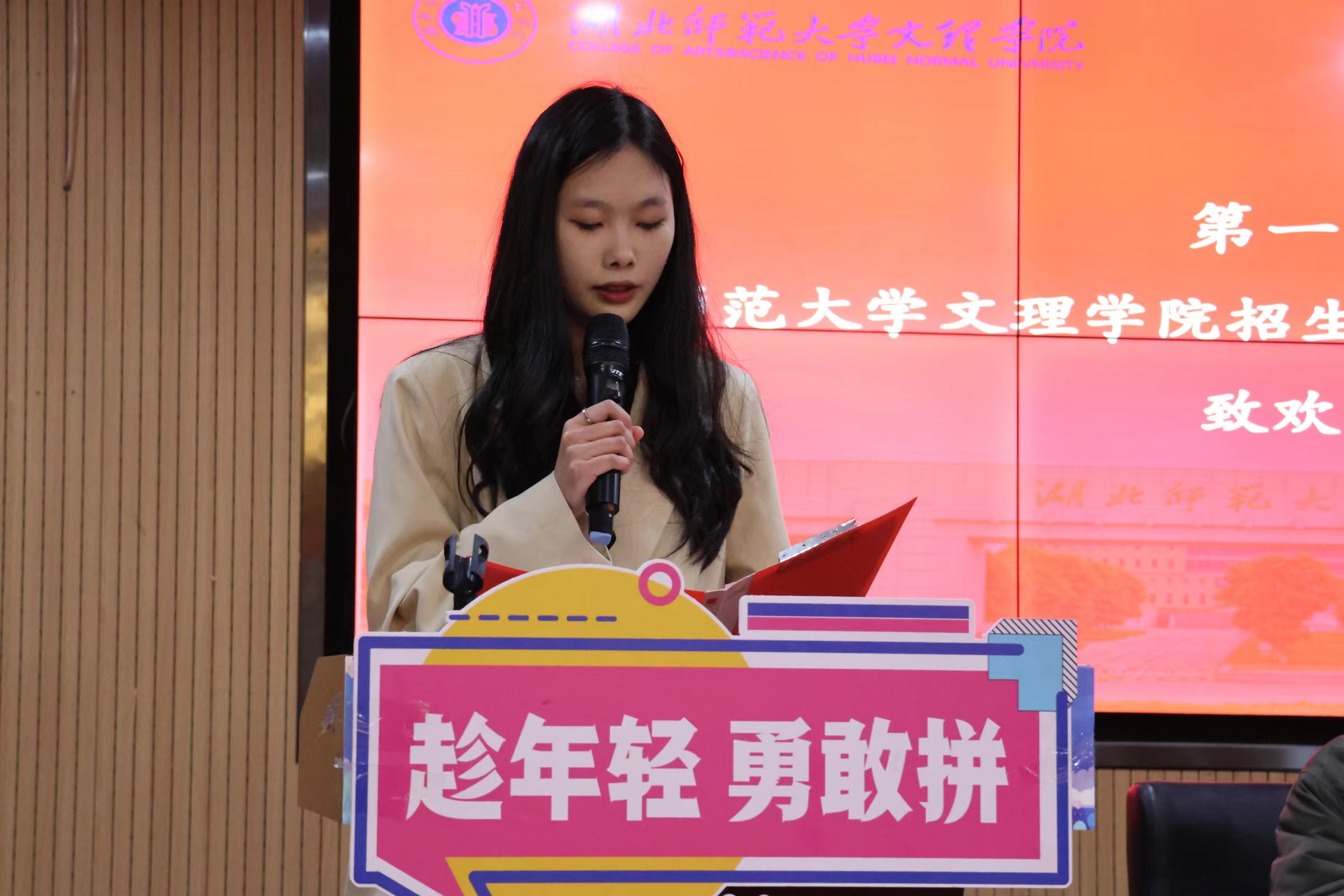 会议第一项,球探网页版学生工作部招生宣传媒体中心负责人杨洲致欢迎词,她对湖北师范大学团学骨干表示欢迎与感谢,同时表明交流会能为两校提供一个相互交流相互学习的机会,促进两校学生组织进步与成长,希望通过本次活动能真正的加强学校学生组织管理制度,促使两校团学工作进一步发展。