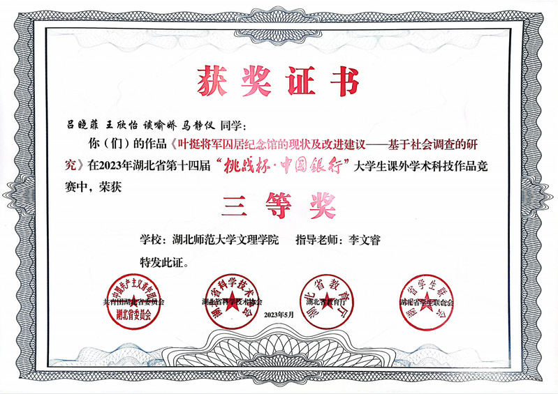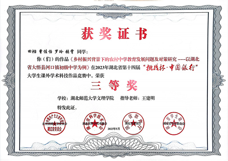(通讯员:苏祎)5月23日,在团省委、省科协、省教育厅、省学联共同主办的湖北省第十四届“挑战杯•中国银行”大学生课外学术科技作品竞赛中,球探qiutan(中国)官方四个项目荣获三等奖!