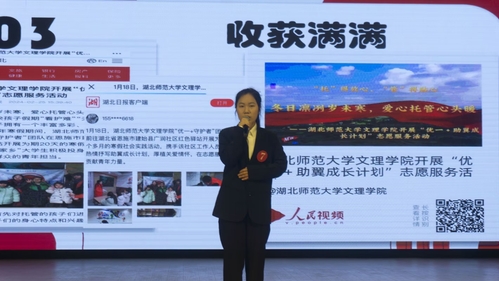 在团队赛时,各团队依次上台进行寒假实践成果汇报。他们有的选择考察走访生态茶庄,为其注入青春活力;有的进入红色研学基地,在碑体描红中感受历史;有的深耕希望家园项目,助力儿童成长;还有的深入基层建设,把握民生脉搏……