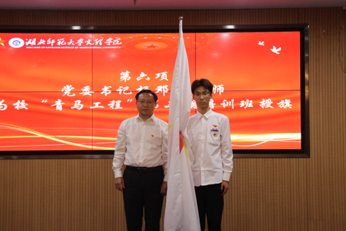 党委书记杨邓红为“青马工程”第二期培训班授旗。旗帜飞扬预示着各位青马学员终将鸿鹄得志,他们将不忘初心跟党走,牢记使命担当,让青春年华在为国家、为人民的奉献中焕发出绚丽的光彩。