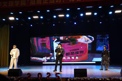 晚会迈入以“燃梦·山海”为主题的第二篇章。《海阔天空》乐队表演震撼登场,将逐梦的豪情洒满全场;《Flower Young+Better Up》呈现舞蹈串烧,在光影流转间勾勒出青春的热烈与鲜活;《落叶归根》歌曲缓缓响起,给同学们带来了家的温暖;《溯光》走秀惊艳亮相,为“燃梦”篇章谱写了璀璨动人的乐章。