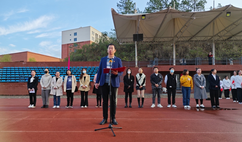 升旗仪式开始前,由主持人介绍本次升旗仪式的主题及意义,随后仪式正式开始。首先,升国旗、奏国歌、行队礼。然后,一支由在校学生组成的合唱团进行大合唱《歌唱祖国》和《我和我的祖国》。仪式第三项,由学生代表刘馨蔓发言,该生曾在第四届全国师范生微课比赛中获得特等奖,她围绕如何提高学习效率,培养正确的学习习惯,找到适合自己的学习方法等方面分享了自己的学习经验。接着,人文学部学生第二党支部书记郭旭林老师发表国旗下的讲话,郭老师从历史的角度提醒学生,应自强不息,争做有为青年。最后,人文学部主任熊子延发表讲话,熊主任给全体学生提出了几点思考和建议:一是热爱青春,立志担当青年使命;二是要珍惜大学时光,刻苦学习,做德才兼备的大学生;三是创设良好学风,做好学习和生活规划,在实践中实现自己的人生目标。