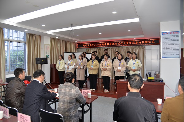 为普及心理健康知识,提高未成年人心理健康素质,10月30日下午,球探qiutan(中国)官方在陈家湾社区举行以“关爱未成年人·助力快乐成长”为主题的心理健康辅导课启动仪式暨实践基地授牌仪式。党委书记杨邓红,学生工作部(团委)、党群工作部人员,学校专兼职心理咨询师、志愿者及西塞山区澄月街办、陈家湾社区领导、沿湖路小学学生及家长代表等共100余人参加仪式。