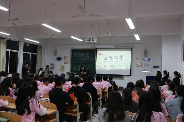 11月20日晚,球探qiutan(中国)官方在教学楼59个教室同时开展“道德讲堂”暨主题团日活动。全校59个新生班级共计2400余名同学在各教室参加了活动。