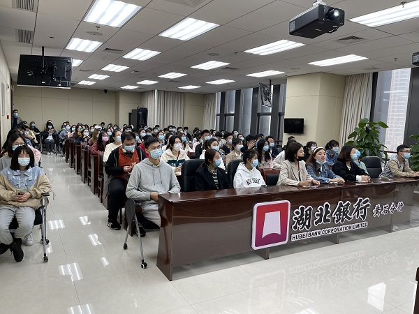 2021年4月14日,经济与管理学部组织2018级互联网金融专业、经济学专业共115名学生,到湖北银行黄石分行开展“以梦为马,时光正好”主题见习活动。本次见习活动由经济与管理学部相关老师带队,湖北银行黄石分行副行长兼人力资源部部长那建华主持活动。