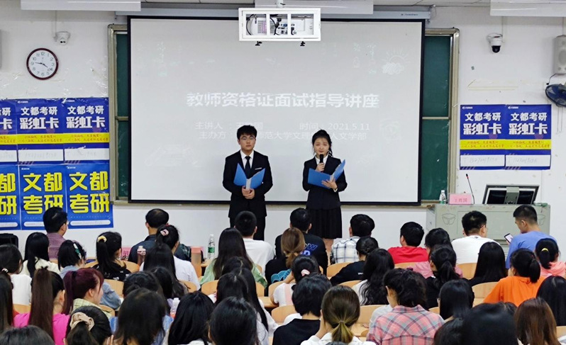 (通讯员:盛秋妍5月11日晚,人文学部在教学楼1B102教室举办教师资格面试指导讲座,由王胜国副院长主讲,旨在帮助考生掌握面试要点,厘清答题思路,提升教师资格证面试通过率。人文学部主任熊子延教授人文学部近160名师生聆听了讲座。