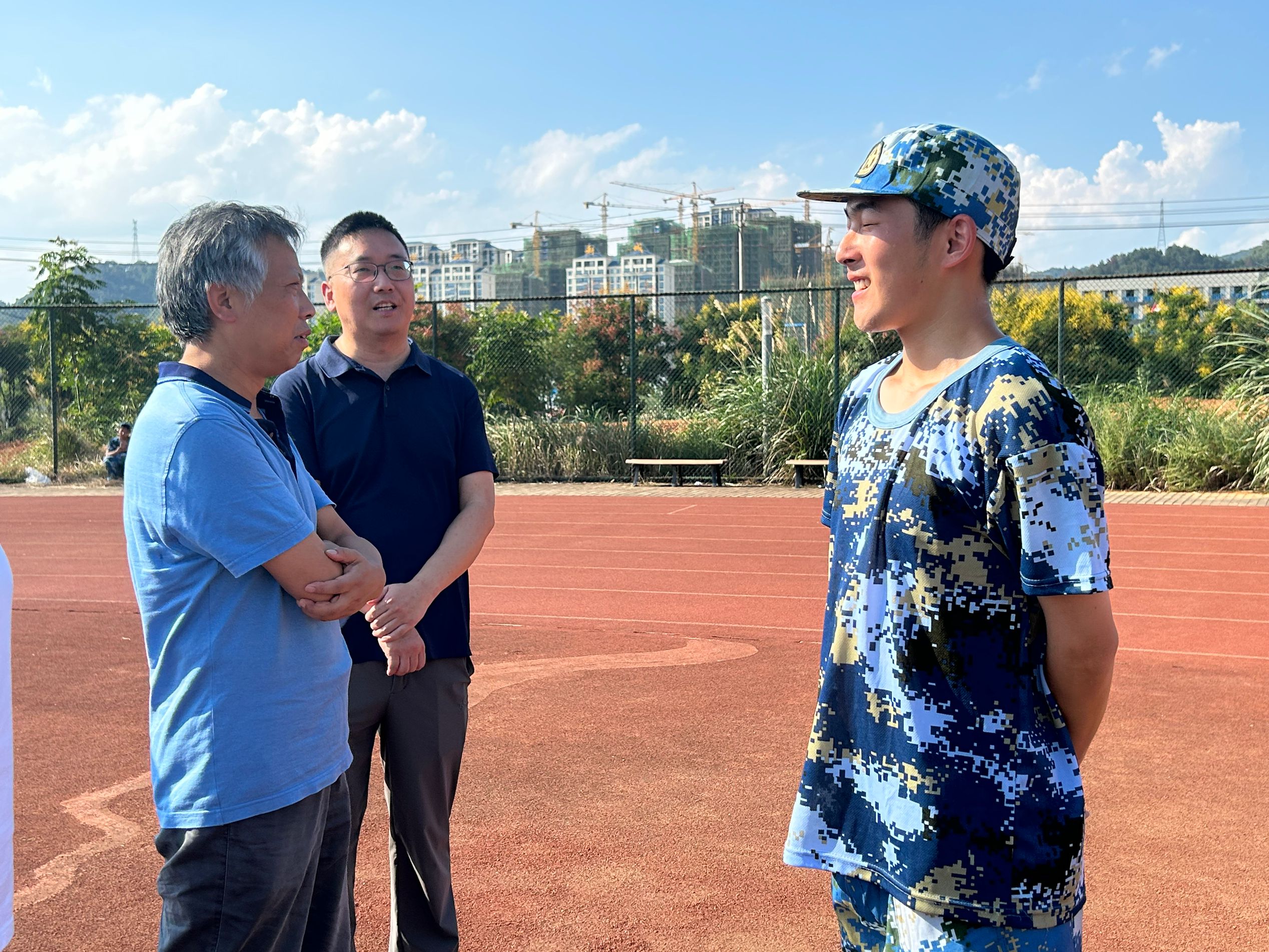 青年兴则国兴,青年强则国强。开展学生军训是加强全民国防教育、提升青年学生素质的重要举措。2023年9月26日,新能源汽车产业学院院长许新山、副院长翁列,党政副书记费凡、23级学工主任谭姣,22级学工主任束庆雯、团学指导老师石卉、辅导员燕自强前往军训场地,了解学生军训情况。
