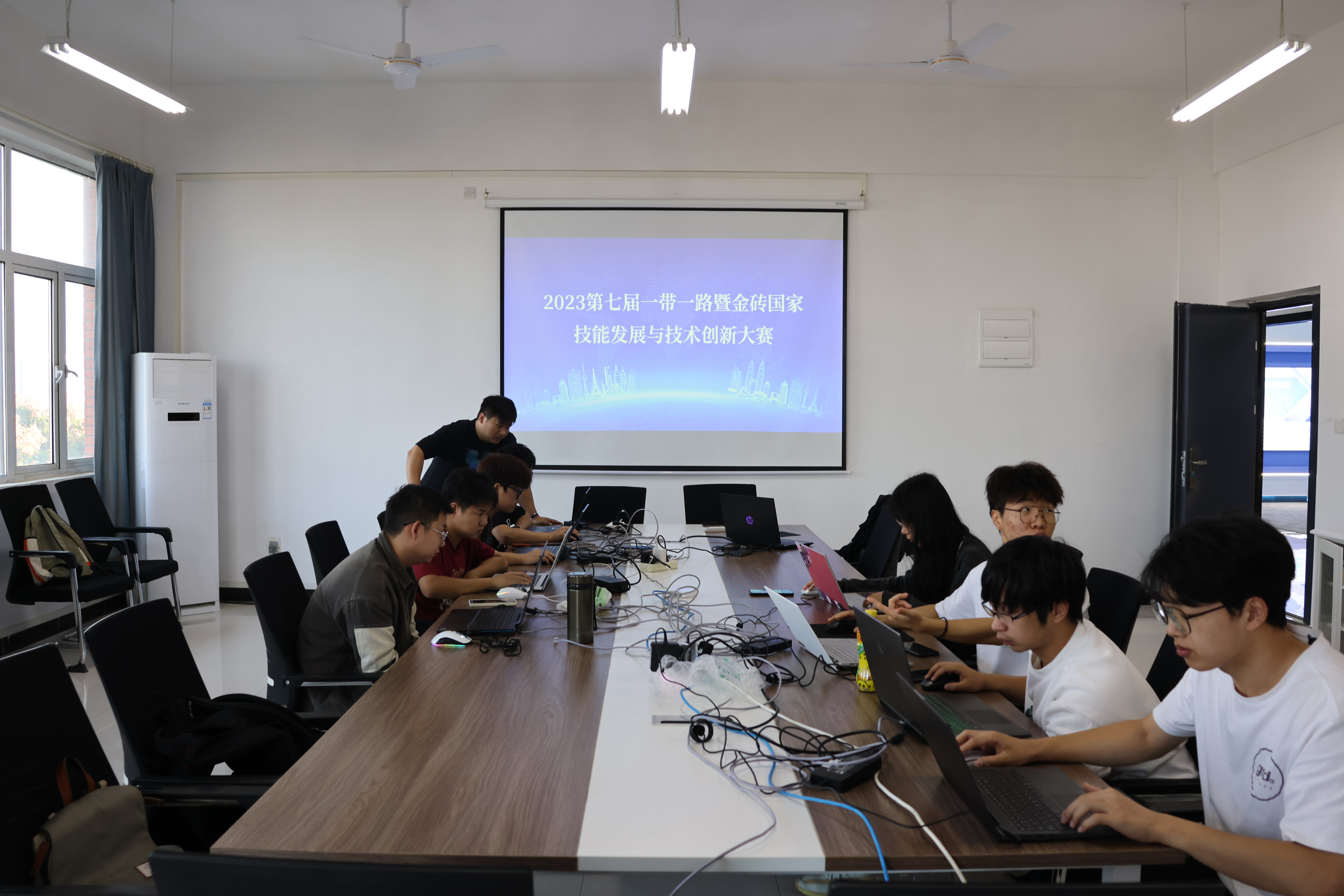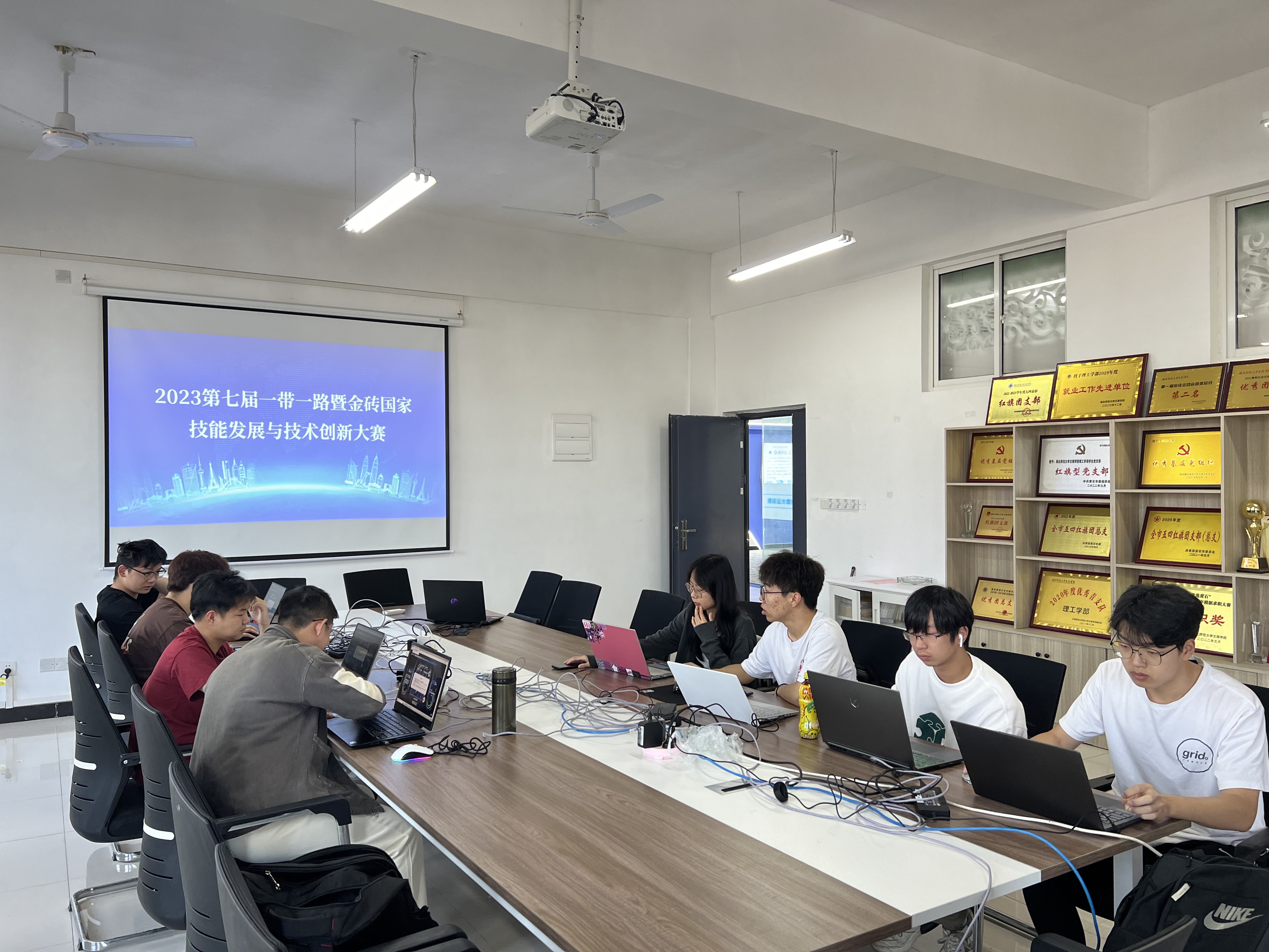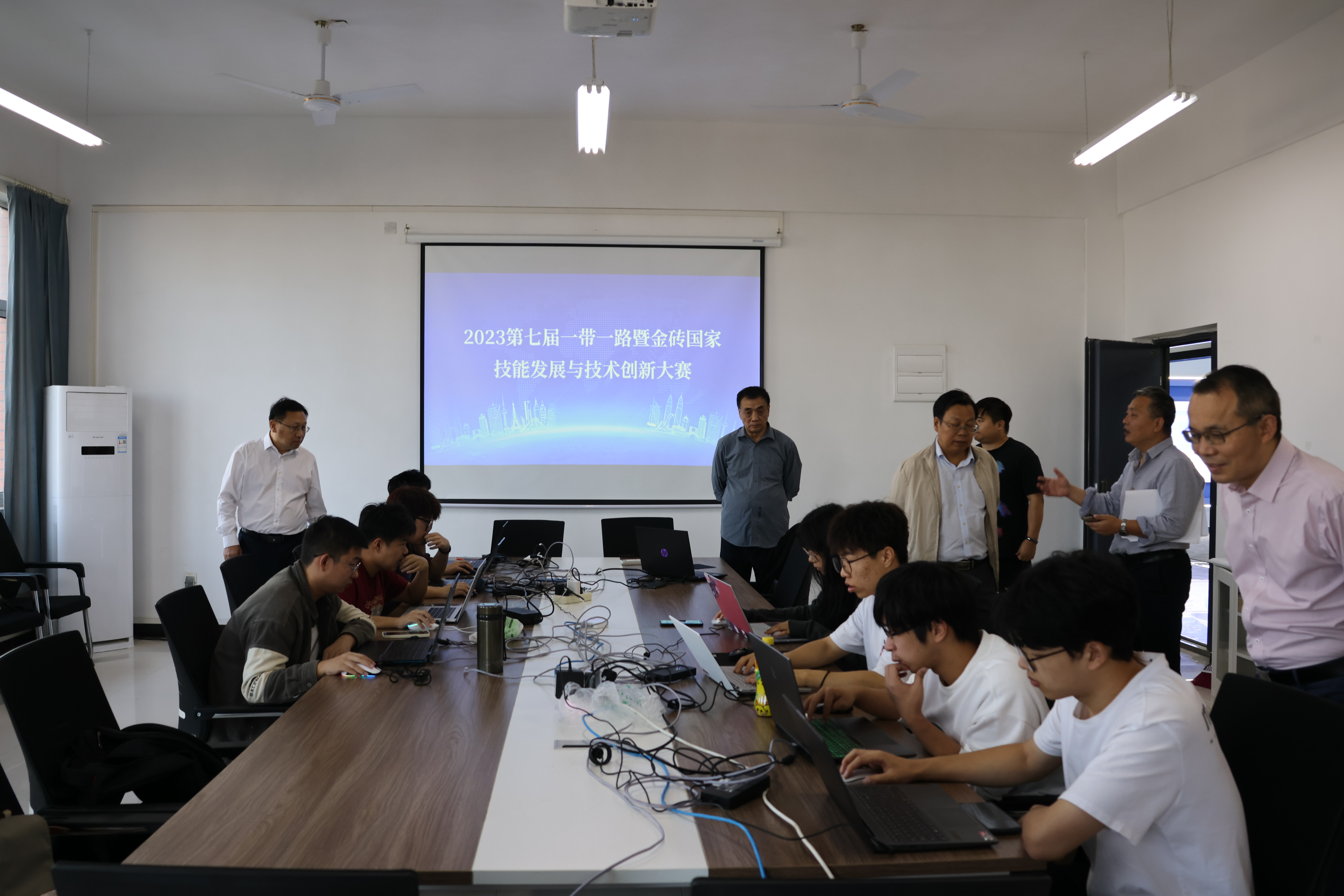 2023年10月18日上午9点,球探网页版党委书记杨邓红,党委副书记之毛,副院长王胜国,宣传部部长陶晚成等一行领导莅临理工学部实验楼311赛场,现场看望本次参加2023年第七届一带一路暨金砖国家技能发展与技术创新大赛的师生们,并预祝学部3个小组在大赛中都取得好成绩。本次赛事次大赛为国际赛事,理工学部共有3个小组(12人)参赛,时间从上午9到12点,全程近4个小时!