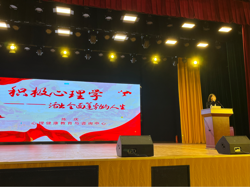 2023年11月9日19:00,球探qiutan(中国)官方心理中心在学术交流中心成功举办了“积极心理学”讲座活动。本次讲座由心理中心主任陈庆主讲,近700名来自于八个学部的学生观看了此次讲座