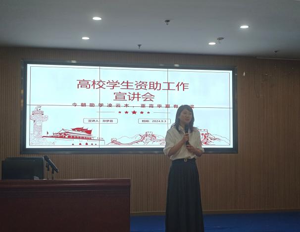 图4 孙梦晨为新生辅导员宣讲资助相关工作