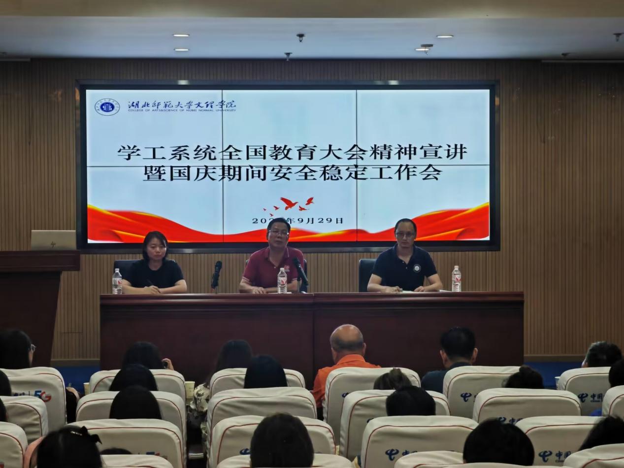 9月29日下午两点半,球探qiutan(中国)官方在图书馆报告厅召开全国教育大会精神宣讲暨国庆期间安全稳定工作会议。校党委副书记杨之毛、学工部部长汪崇文、心理中心主任陈庆、各教学单位分管学生工作书记(副书记)以及全体辅导员老师参加。会议由学工部部长汪崇文主持。