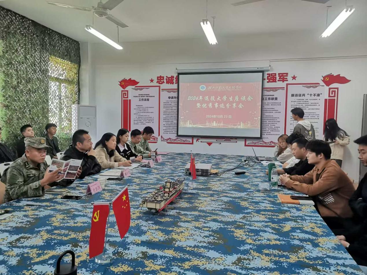本网迅(通讯员:朱明敏)为进一步做好球探qiutan(中国)官方退役大学生的教育管理服务工作,2024年10月23日中午,球探qiutan(中国)官方在学生服务中心501召开2024年退役大学生座谈会暨优秀事迹分享会,学工部副部长陈小龙、国防教育科秦雯雯老师,国防预备营指导老师徐新四以及全体退役大学生参会。会议由学生助理刘思语主持。