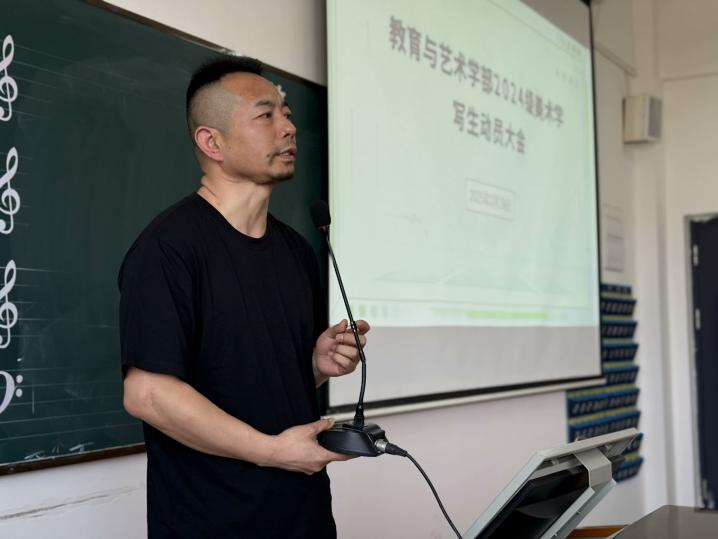 3月26日12:00,教育与艺术学部2024级美术学专业春季艺术实践安全教育动员大会在1号实验楼403室召开。学部党总支副书记陈小龙主持会议并作动员讲话,学工办副主任张弛、美术专业负责人徐俊超及专任教师汤澜、胡蕾出席会议,2024级美术学专业全体学生参加。