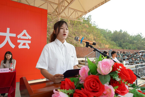 党委书记杨邓红宣读了2022级新生军训表彰文件