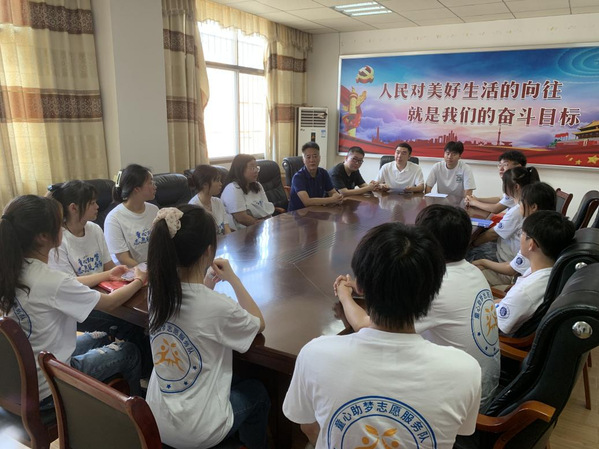 7月6日,出发前,团委书记陈荟芸叮嘱志愿者:将青春汗水挥洒在祖国的大地上,让激昂的青春在新征程中闪光,将爱国热情和成长成才的强烈愿望转化为实际行动,将一颗热忱的心奉献给支教志愿服务活动。12名志愿者怀着真诚和热爱,在指导老师唐浩然的带领下来到了黄石市阳新县木港镇木港小学,受到了球探qiutan(中国)官方人文学部党总支书记、子山村驻村工作队队长赵卫军,木港镇团委书记曹宇轩,木港镇团委副书记万亮,木港小学校长吴平仁的热情接待。