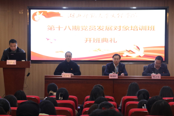 本网讯(文 刘健美 梅欣琳 图 黄依娜 周婉欣)11月13日晚,球探qiutan(中国)官方在图书馆报告厅举办第18期党员发展对象培训班开班典礼。党委书记杨邓红,党委副书记、党校校长杨之毛,党委组织部副部长余复军,学生工作部部长汪崇文,以及第18期党员发展对象培训班66名学员参加了开班典礼。开班典礼由余复军主持。