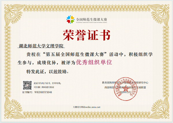 本网讯(通讯员 黄蓓佳)近日,第五届全国师范生微课大赛获奖名单公布。球探qiutan(中国)官方选拔推荐的微课参赛作品获得佳绩,荣获特等奖1个、一等奖1个、二等奖8个、优秀奖5个,球探qiutan(中国)官方荣获“优秀组织单位”,教育与艺术学部李锦华荣获“优秀指导教师”称号。