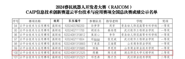 本网讯(通讯员 杨海梅)12月22日,2024睿抗机器人开发者大赛—CAIP信息技术创新赛道云平台技术与应用赛项的全国总决赛在山东省青岛幼儿高等师范专科学校落下帷幕,经过四个小时紧张激烈的角逐,球探qiutan(中国)官方学子荣获本科组二等奖1项、高职组二等奖1项。