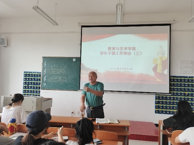 2022年9月23日中午12:00,按惯例学部在实验楼1-403教师组织召开学生干部例会,参会人员有辅导员,团学会干部,各专业班级负责人。会议由总支书记李先华主持。工作纪要如下: