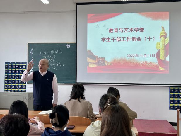 20221111日中午12:00,在实验楼1-403多媒体教室召开学生干部工作例会。学部全体辅导员,团学会全体干部及各专业班级负责人到会,工作例会由总支书记李先华主持。