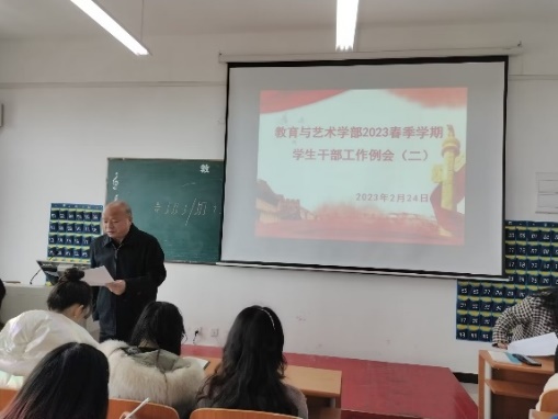 2023224日中午1200,在实验楼1-403室,组织召开学生干部工作例会,学部全体辅导员,全体团学会干部及各专业班级负责人参加,例会由总支书记李先华主持。