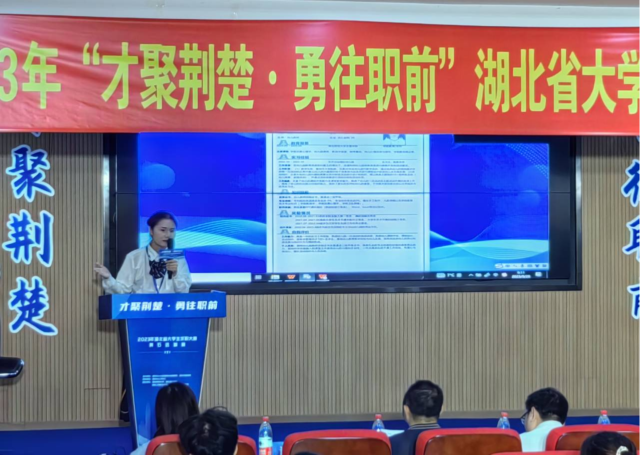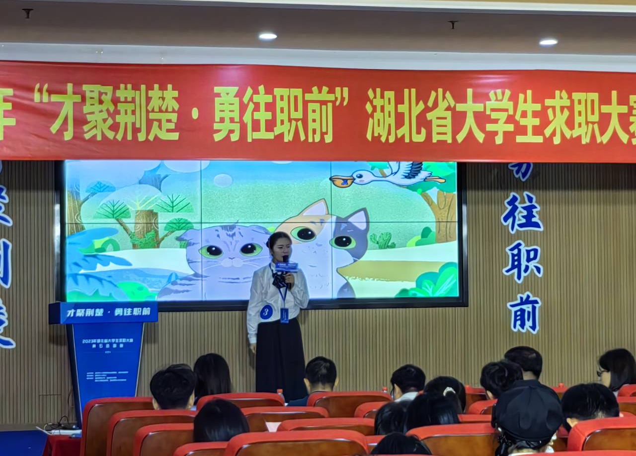 9月26日上午9:00,2023年“才聚荆楚·勇往职前”湖北省大学生求职大赛黄石选拔赛于球探网页版图书馆报告厅举行。来自黄石市四所高校的12位选手同台竞技,全力以赴,展现风采。比赛共有四个环节,分别为自我介绍、才艺展示、情景模拟、现场问答。教育与艺术学部的李婷同学以新颖的自我介绍方式,精彩的才艺展示,良好的反应能力获得了评委的好评,也获得了在场观众的阵阵掌声。李婷同学最终以89.7的高分,排名第四,荣获优胜奖。
