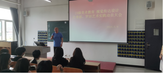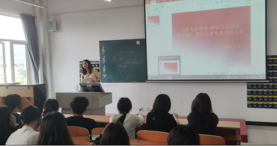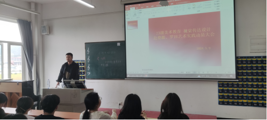 2024年5月9日中午12:00,教育与艺术学部在实验楼1-403教室召开了23级美术教育、视觉传达设计专业赴罗田、婺源艺术实践动员大会,会上学部书记李先华讲解了此次艺术实践的性质、目的和意义,并希望同学们珍惜这次机会,积极参与,严格遵守纪律和安全规定,展现良好形象。随后,叶晟老师与刘静老师分别介绍了赴罗田与赴婺源的行程安排、教学安排、生活安排,对学生提出实践期间的安全管理相关要求,解答了部分同学的疑问。