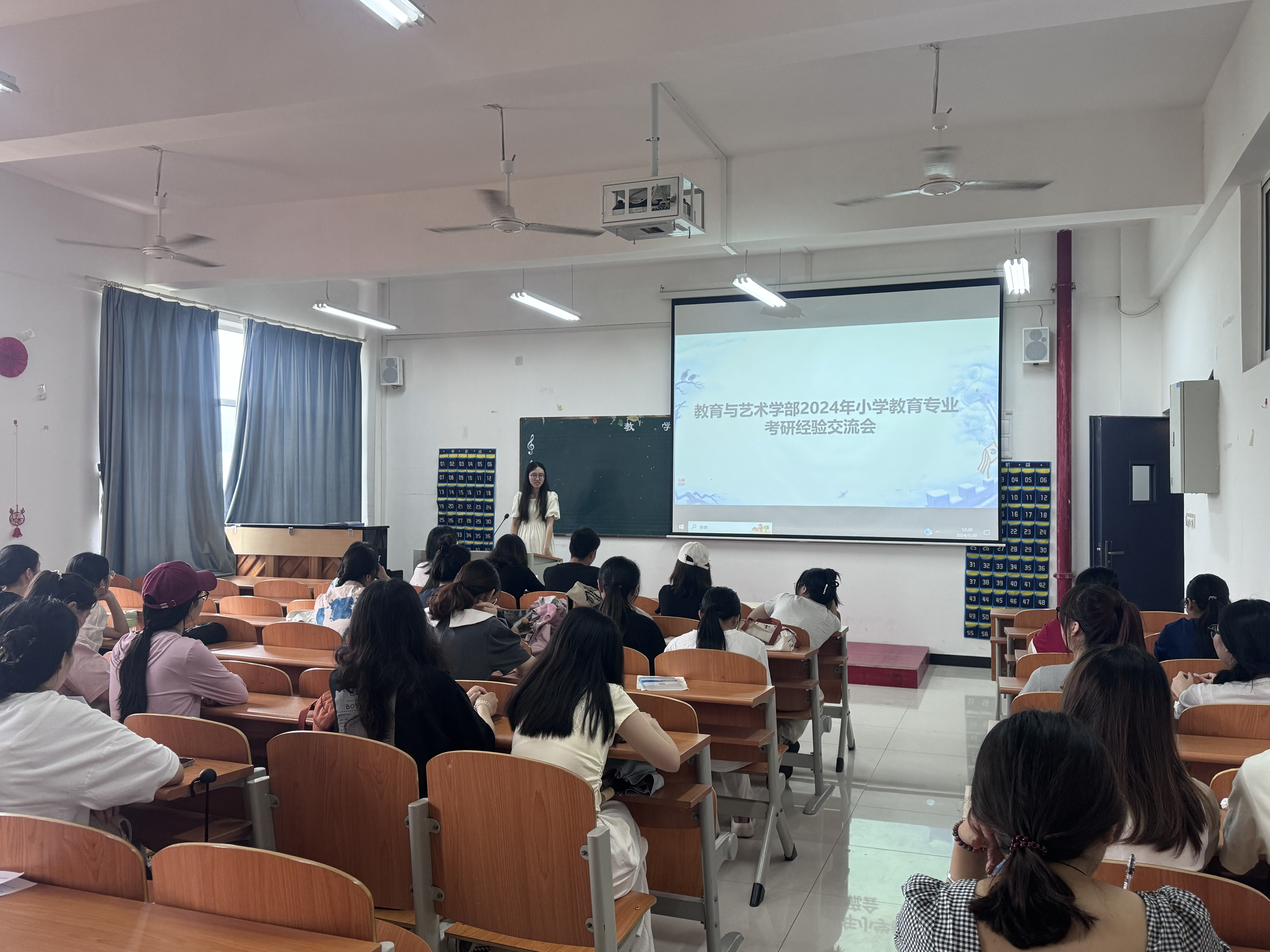 为激发2022级小学教育励志考研学生,使他们全面认识考研的前期准备,如何备考,解决考研学生的各种疑惑,教育与艺术学部于5月20日中午12:00在实验楼1-401举行考研经验交流会。交流会由谭青老师主持。