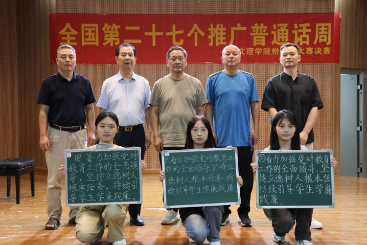正值全国第27个推广普通话周,2024年9月23日球探网页版语委办主办、教育与艺术学部承办的“执笔扬正气,携手倡廉洁”粉笔字书写比赛决赛。比赛邀请了教务部部长潘继斌,人文学部党总支书记周景斌,教艺学部党总支书记李先华,理工学部党总支副书记肖圣芳,教艺学部书法专任指导李松老师担当评委。