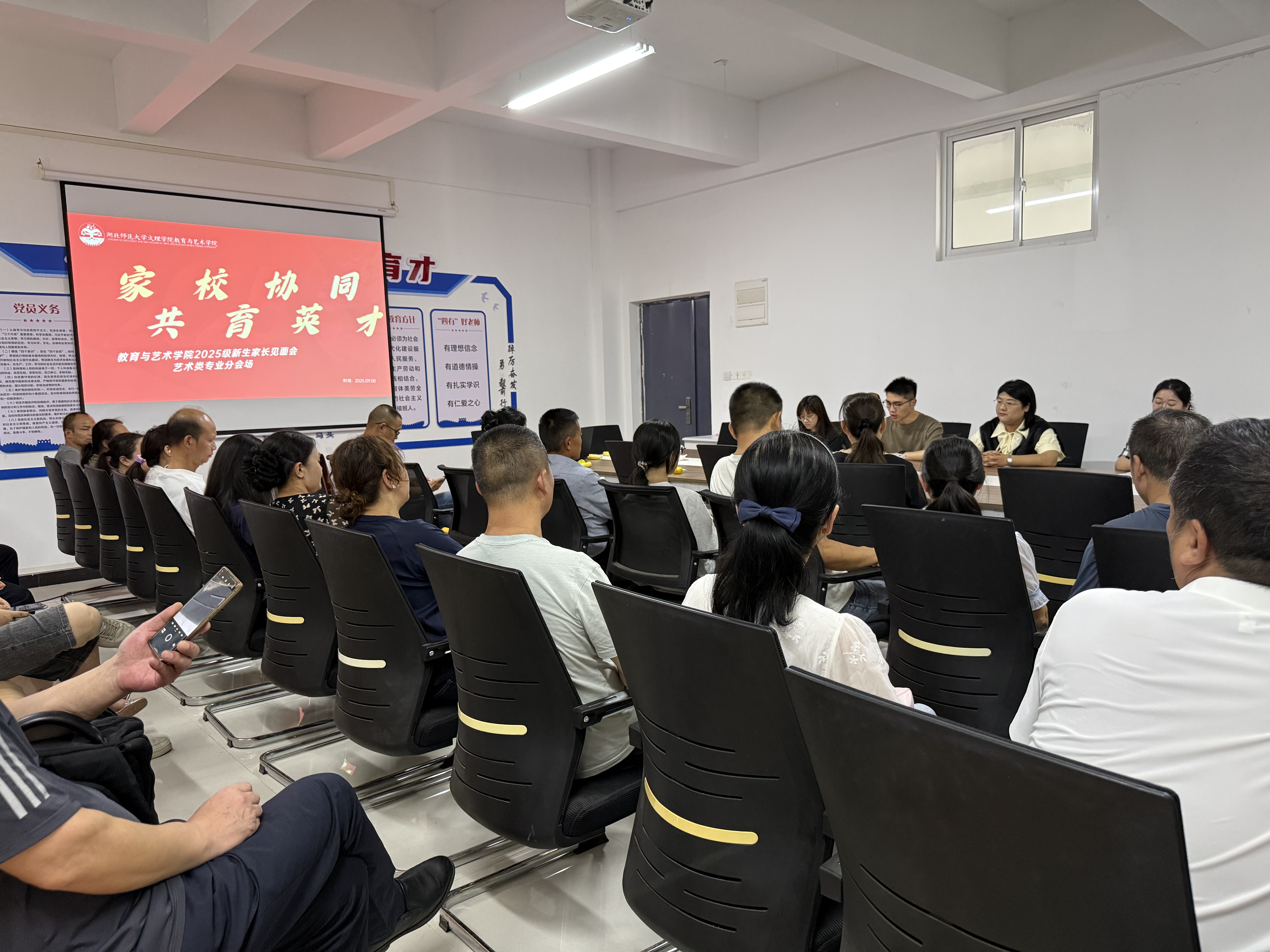 2025年9月8日中午12时,球探网页版教育与艺术学院以“主会场+分会场”“线下+线上直播”模式,在图书馆报告厅举行2025级新生家长见面会,获家长热烈响应。教艺学院院长王文教授、副院长胡蕾、党总支副书记陈小龙、各专业负责人及资深教师,全体辅导员参加会议。