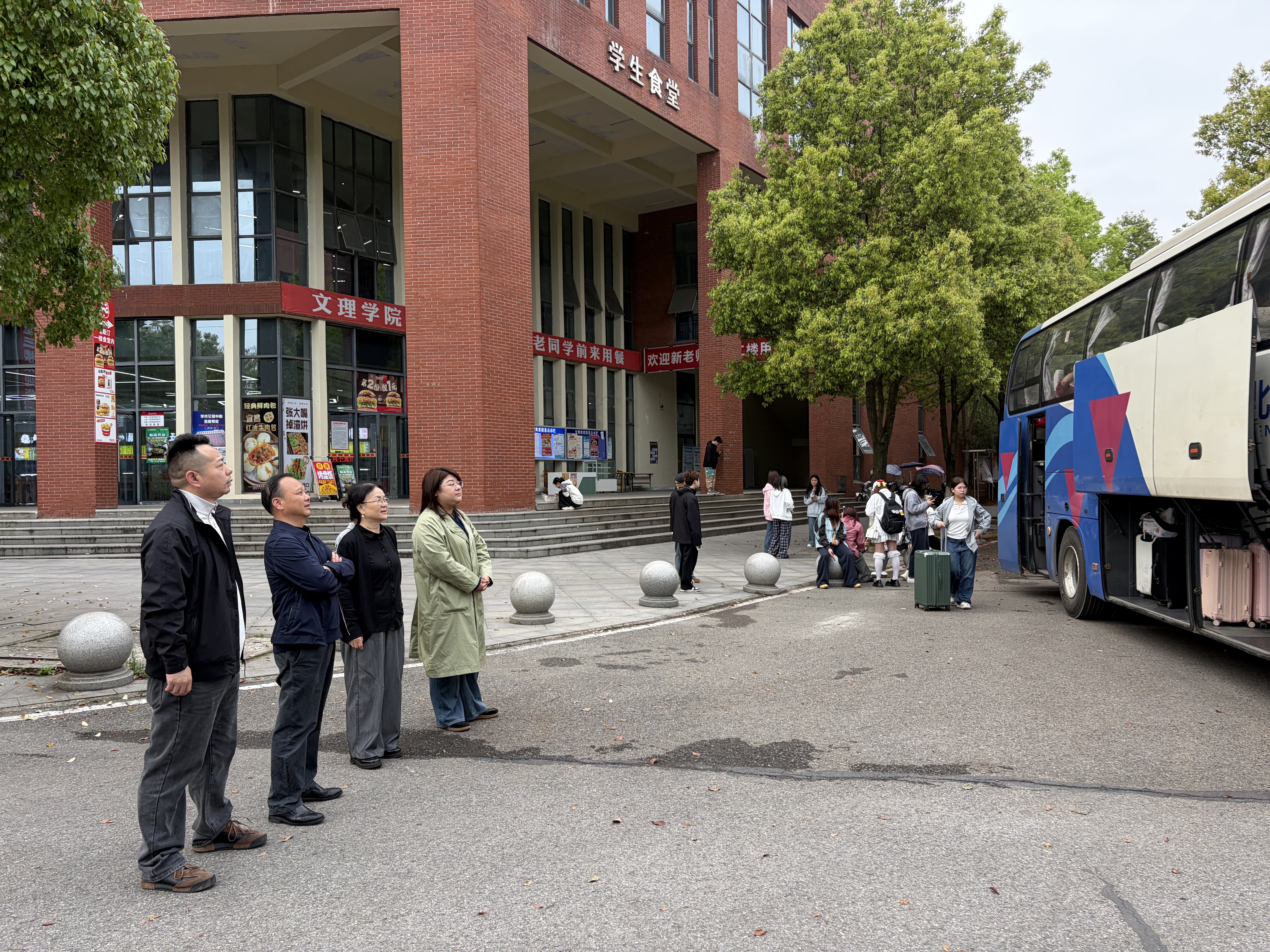4月13日早7时,教育与艺术学院2025级美术学专业全体学生前往安徽黄山开展春季艺术实践课程。球探网页版教务部副部长胡敏、教育与艺术学院院长王文等领导、老师专程送行。